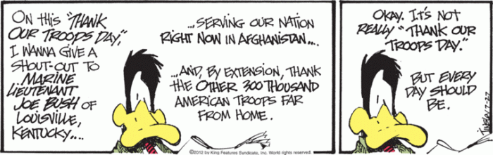 Thank Our Troops Day July 27, 2012July 28, 2012 Fred Childs Posts Double-click on Mallard’s face for a larger version Rate this:Share this: Click to email a link to a friend (Opens in new window) Email Click to share on Facebook (Opens in new window) Facebook More Click to share on X (Opens in new window) X Click to print (Opens in new window) Print Like Loading... Related