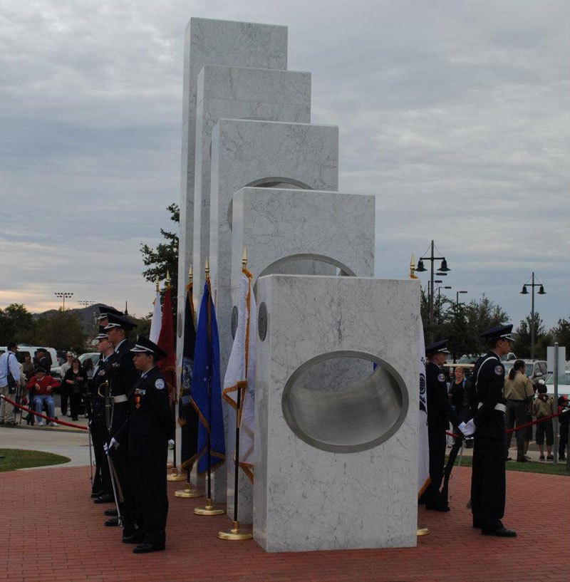 The memorial was designed by Anthem resident Renee Palmer-Jones. The five marble pillars represent the five branches of the United States military. They are staggered in size (from 17 ft to 6 ft) and ordered in accordance with the Department of Defense prescribed precedence, ranging from the United States Army, the United States Marine Corps, the United States Navy, the United States Air Force and the United States Coast Guard.