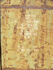 Pictured below is a piece of metal that is part of a Montagnard hootch. It is a flattened out metal canister which held a 175 M round. This picture was taken on our trip back in 2008