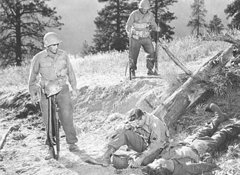 They crawled out of the ditch and inched their way 75 yards up the side of the hill. There they secured another ditch and set up a machine gun. As they got the ammo ready, the Germans quit shooting, and they saw a white flag waving at the top of the ridge.