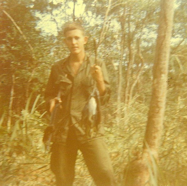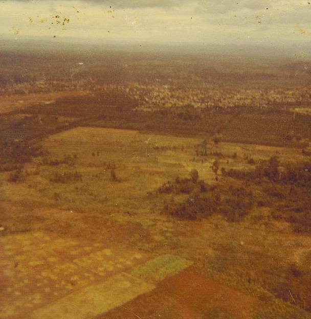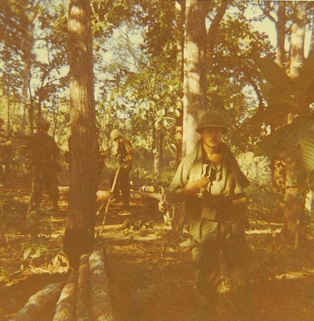 Chu Moor mountain from the LZ April 1968Smith, Roach, Stover, HammondSetting up a perimeterOn patrolJack Chavez and Bud RoachOk, I’ll pick up a quart of milk on the way homeUsed a grenade to catch fishTaking a break on patrolBattalion Aid StationBan Me Thout from the airB52 bomb crater on the Ho Chi Minh trail