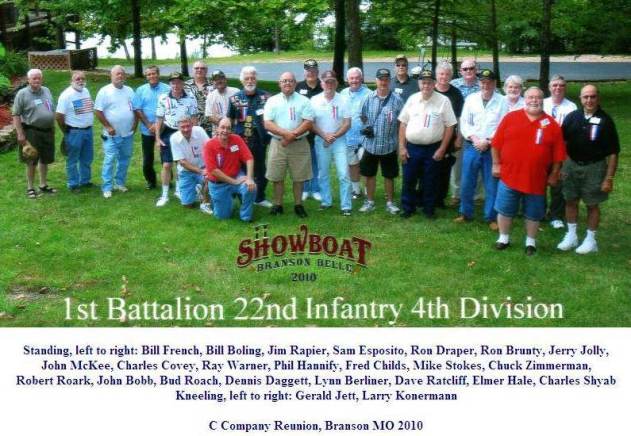 Reunion 2010 – Branson, MO Branson War Museum Medal of Honor recipients – Vietnam Catching up Gerald Jett Lt John Bobb Charlie – always with a smile CPT Konermann addressing the group The group Some of the wives Tim Ray Bud preparing for Flames of Remembrance Bud, Mike, Susan remembering Gary Grassi Charlie lighting a candle Elmer lighting a candle Claudia and Chuck remembering Lt Bill Zimmerman David lighting a candle Sam remembering our buddies Really the Honeysuckle Inn. Next door to the right with the peaked roof is a Mexican Restaurant where many spent time at happy hour or later. Share this: Click to email a link to a friend (Opens in new window) Email Click to share on Facebook (Opens in new window) Facebook More Click to share on X (Opens in new window) X Click to print (Opens in new window) Print Like Loading...
