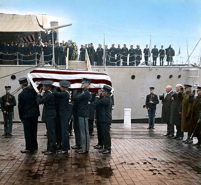 The World War I Unknown arriving at the Washington Navy Yard, 1921 (colorized)